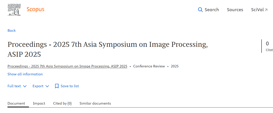 The ASIP 2025 proceedings has been indexed in