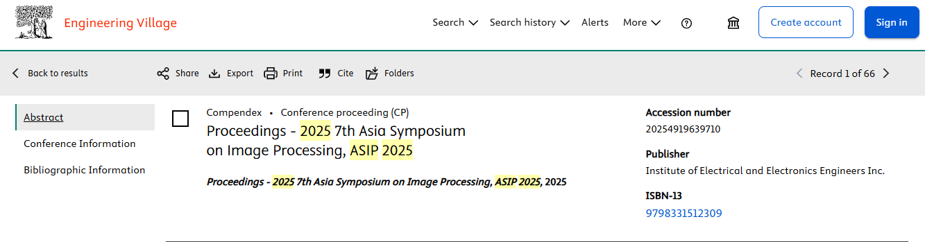 The ASIP 2025 proceedings has been indexed in
